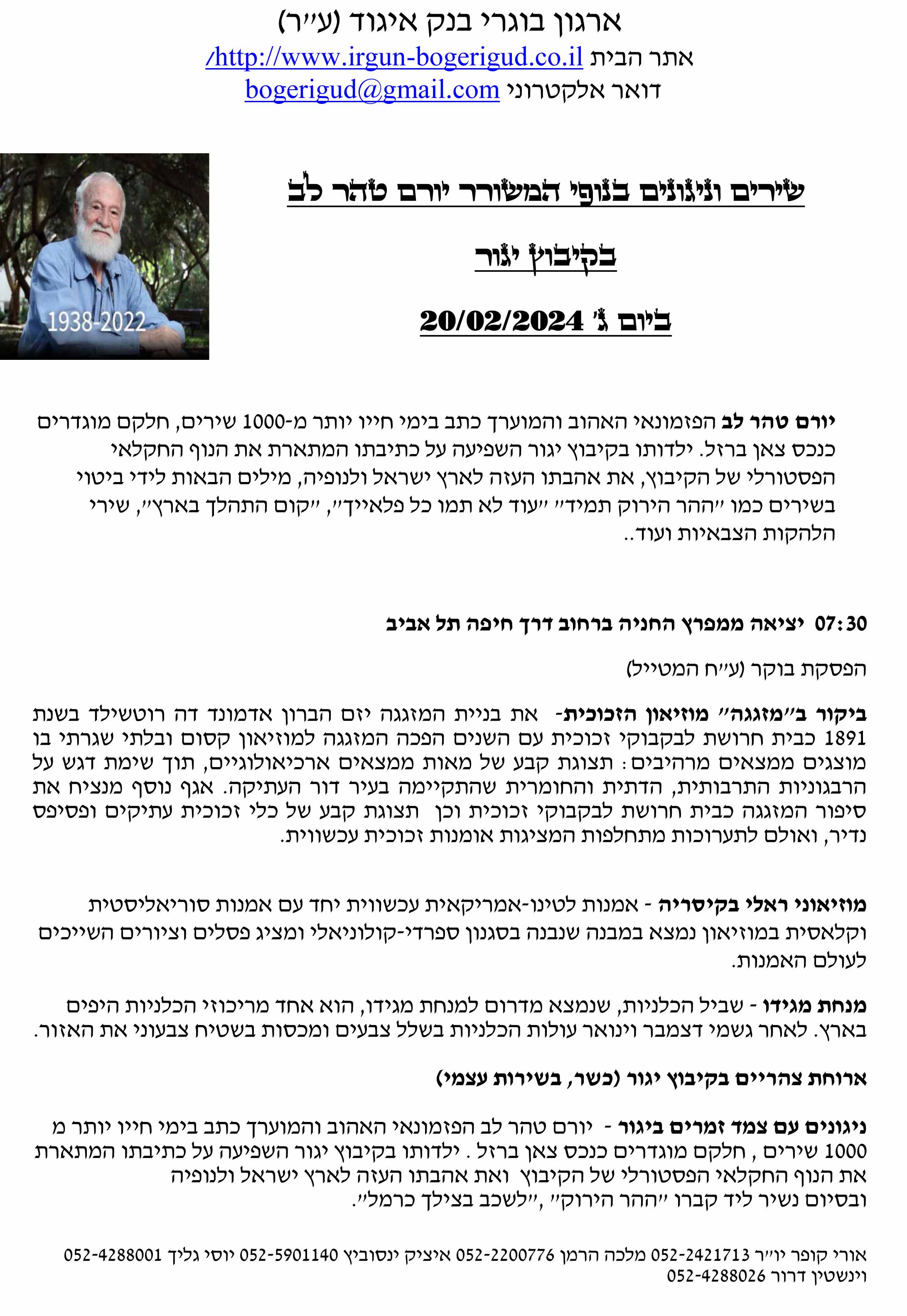 נשמח לראותכם בסיור - ביקור ב"מזגגה" מוזיאון הזכוכית; ביקור ב"מזגגה" מוזיאון הזכוכית; מנחת מגידו - שביל הכלניות; ניגונים עם צמד זמרים ביגור קראו עוד →
